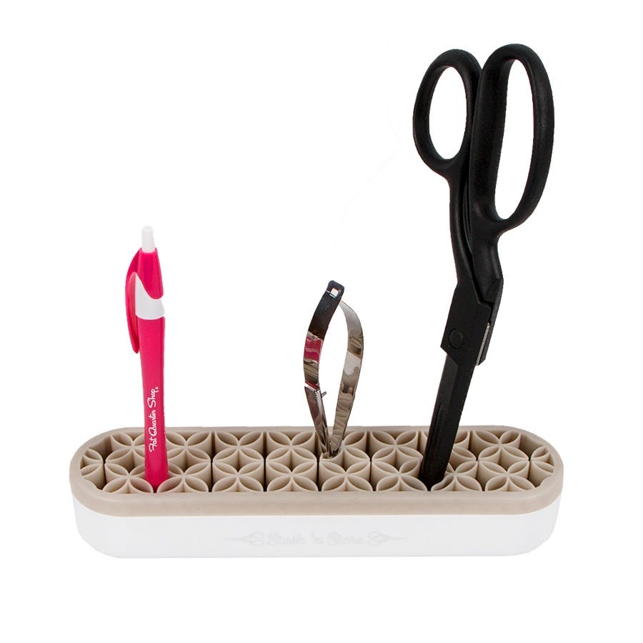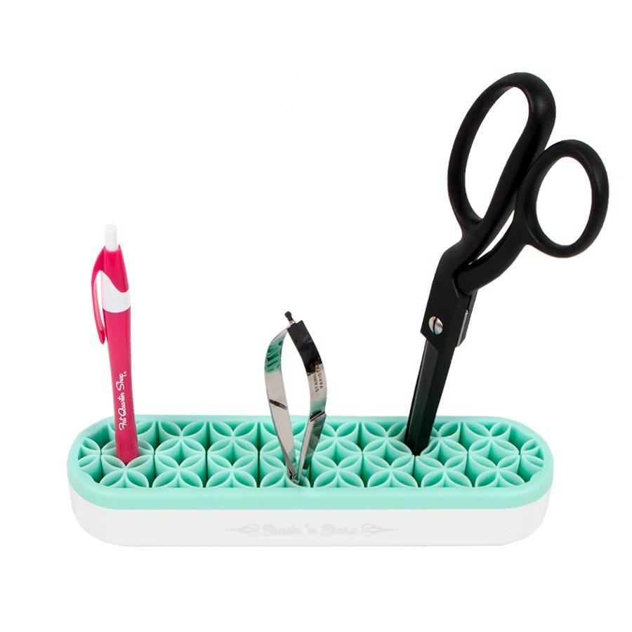 Easily store marking tools, scissors, stilettos, rulers, even brushes and small rotary cutters, in an easy-to-grab upright position. The silicone pockets are smooth and offer a sturdy grip and it is also simple to clean.