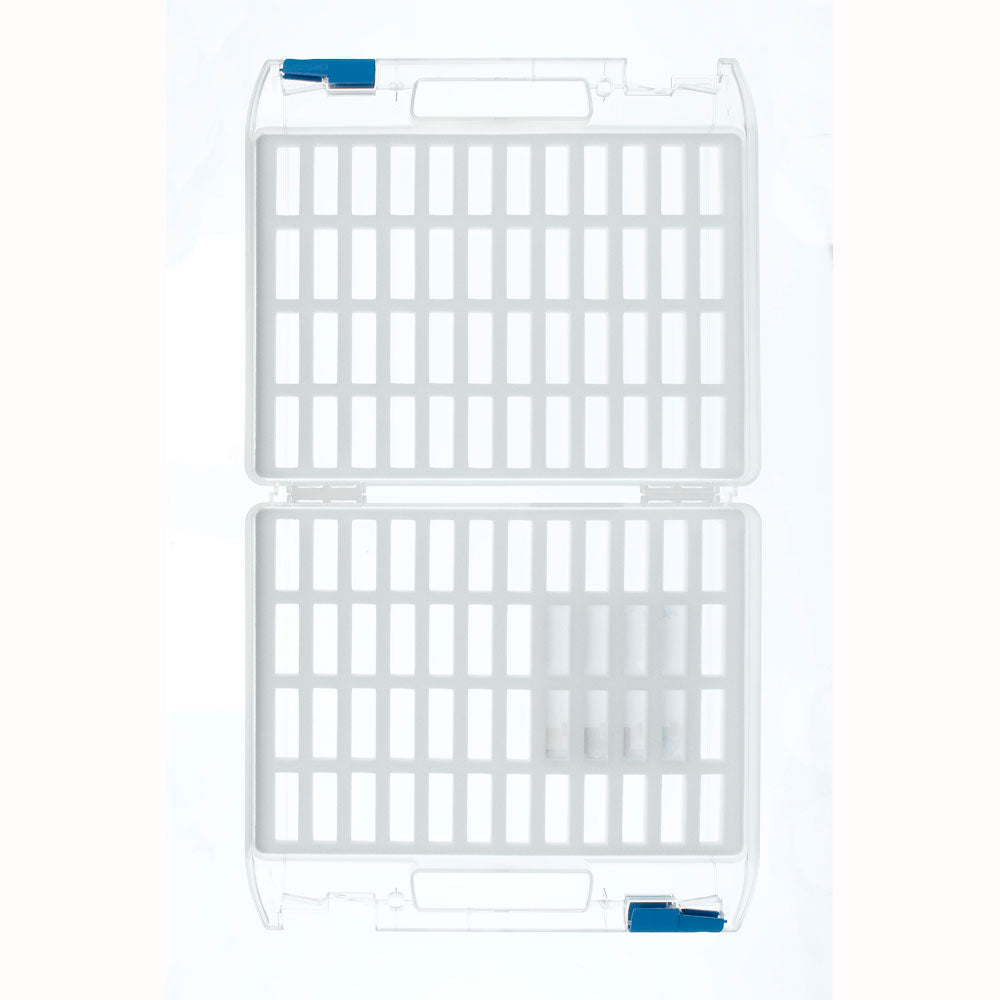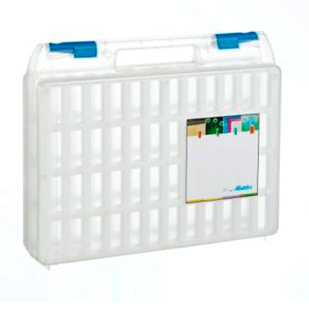 Includes Mettler Empty Storage Box for 96 Small Spools & printed shade card for the Polysheen, Seralon and Silk Finish threads.
