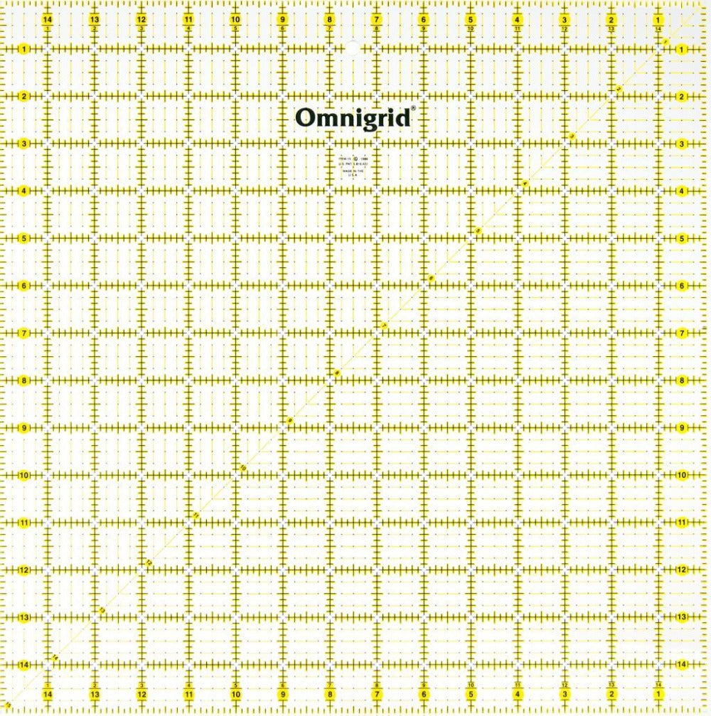 The 15” x 15” ruler has the following standard Omnigrid features:
