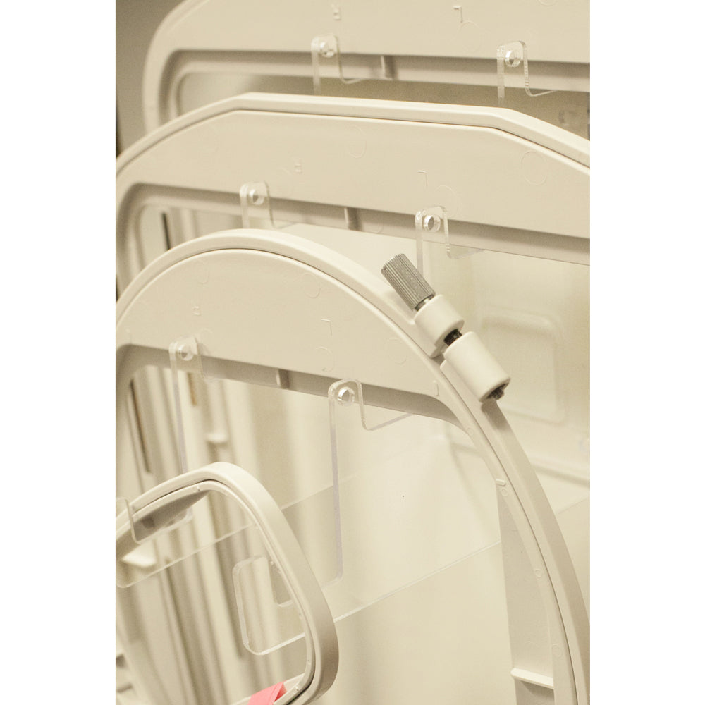 At Last a practical way to store your embroidery hoops rather than a heap in a drawer! 4 tiers allow you to arrange your hoops in an accessible and safe way.